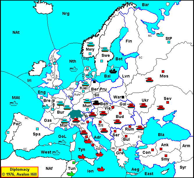 | Bar - StP: OK Nwy S Fin - Swe: OK Fin - Swe: OK Nth - Den: OK Eng - Nth: OK Ruh - Kie: OK Bur - Mun: OK Mar - Bur: OK GoL - Mar: Bounce with Pie 1:1; MAt S Wes H: OK Wes S Tyn - Tun: Void; |