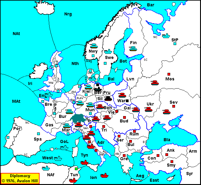 Bounce with StP 1:1; Sev - Mos: Bounce with Mos 1:1; Ukr - War: OK Rum - Ukr: OK Ion S Tyn - Tun: OK Tyn - Tun: OK Rom S Nap - Tyn: OK Nap - Tyn: OK Pie S Mar H: Void; Gal S Vie - Boh: OK Vie - Boh: OK Tyr S Bur - Mun: Void; Tus S Pie H: OK Tri - Ven: OK Bud - Vie: OK |