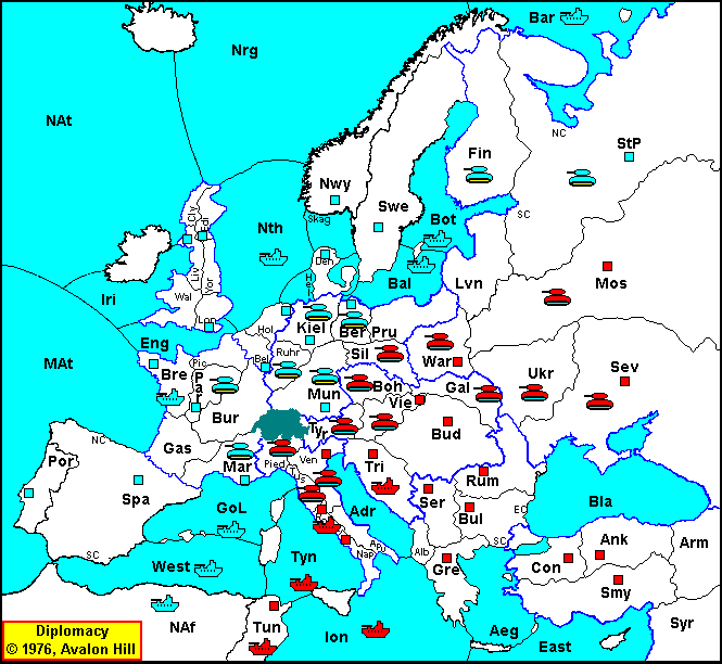 | Ion S Tun H: OK Tun S Tyn H: Cut by NAf; Tyn S Tun H: Cut by GoL; Rom S Tyn H: OK Pie S Tus H: OK Tus S Pie H: OK Ven S Tyr H: OK Tyr S Vie - Boh: OK Vie - Boh: OK Boh - Sil: OK Gal S Boh - Sil: OK War - Pru: Bounce with Sil 1:1; Ukr - War: Bounce with War 1:1; Mos S Ukr - War: OK Sev - Ukr: Bounce with Ukr 1:1; |